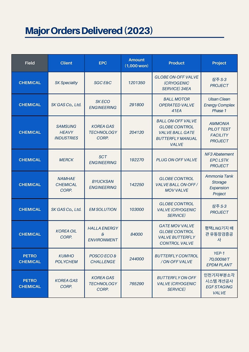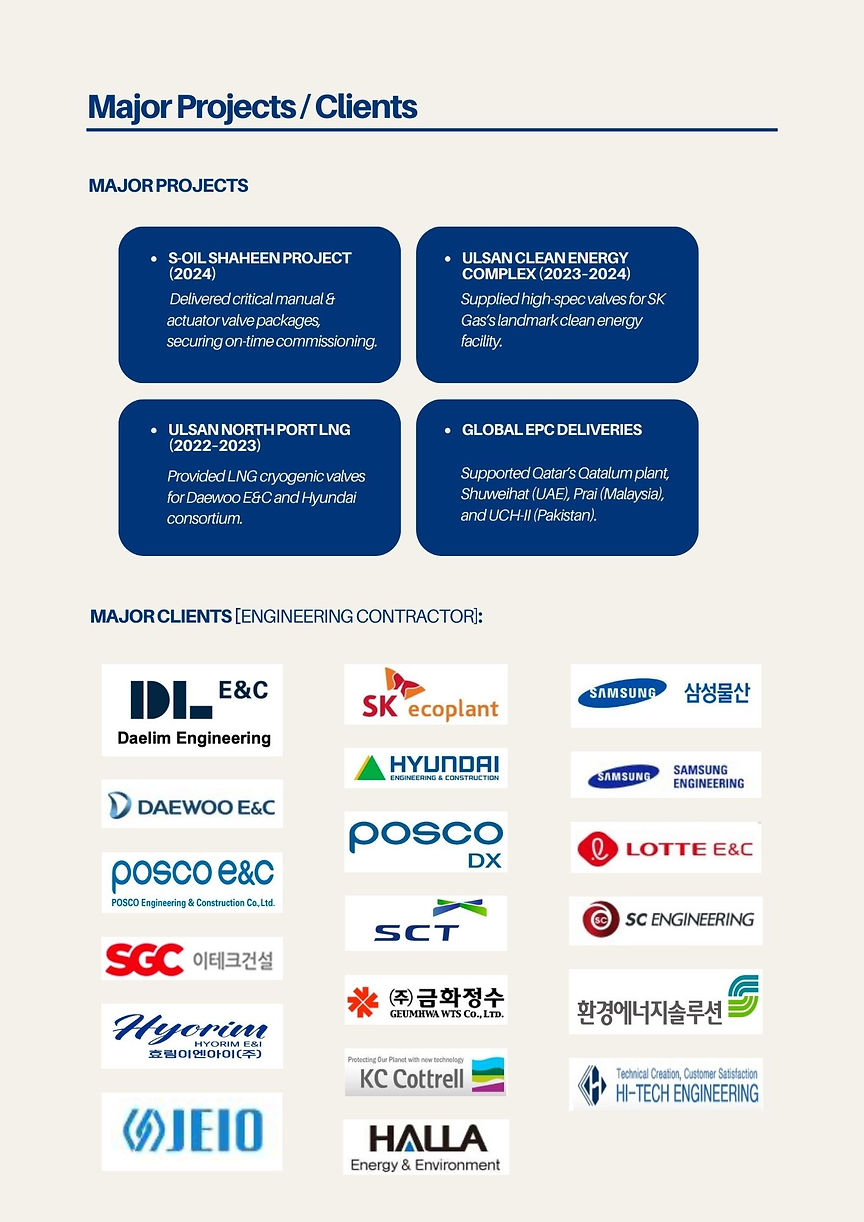 ZERONECV has delivered critical control and cryogenic valve solutions to major LNG, petrochemical, hydrogen, and power projects in Korea and overseas. Our references include large-scale packages supplied to top EPCs such as Samsung Engineering, Hyundai E&C, POSCO E&C, SK Ecoplant, and global operators across the Middle East, Southeast Asia, and Europe.